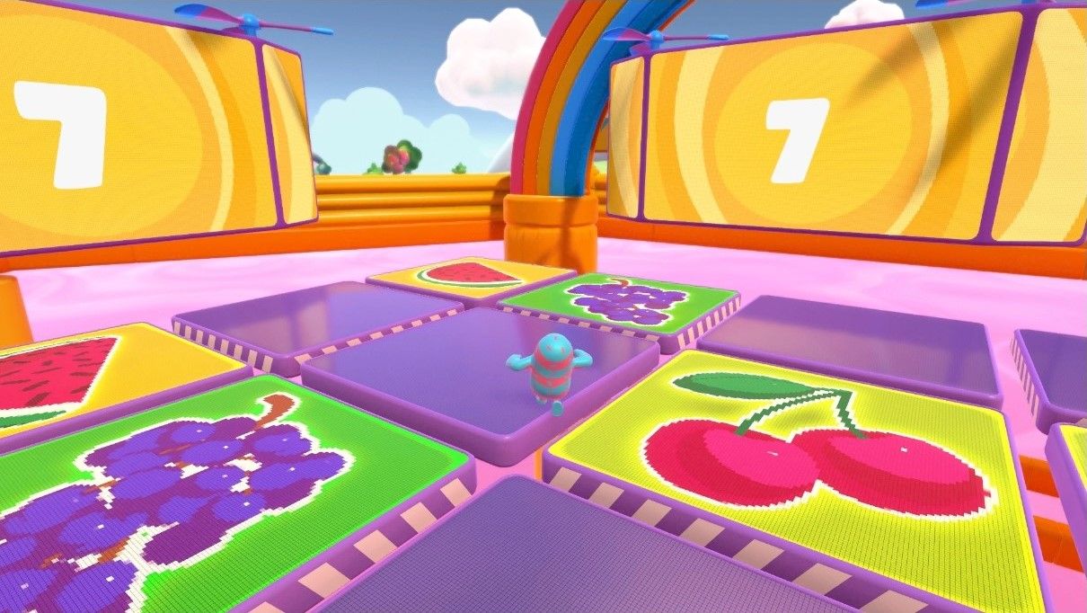 여기도 쉬운 방법이 있다 .절대 가운데로 달리지 마라. 절대 빨리 가려고 뛰거나 남을 붙잡지 마라. 여기는 그냥 위버튼만 누르는게 가장 빠르다. 제일 중요한건 끝으로 달리는 거다. 과일은 저 빨간 삼각형을 맞고 튀기 때문에 오른쪽이나 왼쪽 끝으로만 가면 과일에 맞을 일이 없다. 빨간삼각판을 지날때는 점프 후 슬라이딩을 해 주면 된다. 가운데로 가는 사람들은 거의 탈락이라 보면 된다. 꾸준히 구석으로 가다 마지막 즈음에 점프 슬라이딩으로 올라가면 그대로 골인이다.