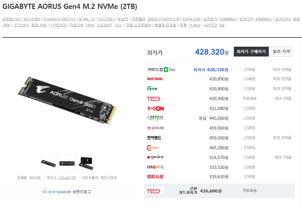 가격은 비싸지만 무려 3600TBW에 달하는 놀라운 쓰기 수명을 가지고 있으며, 또한 666g를 SLC 캐싱으로 제공하기 때문에 SLC에 달하는 수명을 지닙니다. 속도 역시 5000 4400에 달하기 때문에 거의 끝판왕이라고 할 수 있습니다. 여유 있는 사람들은 이걸로만 4개 구매하는 경우도 있습니다. 벌써 품절이 떴다는 말이 있습니다.