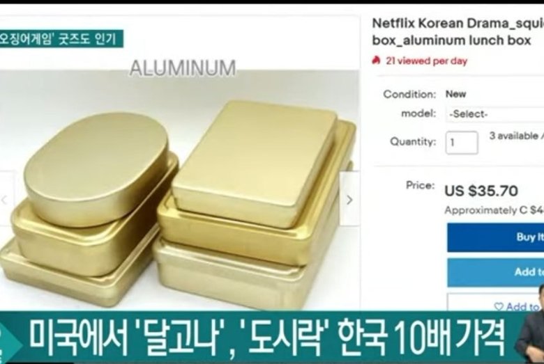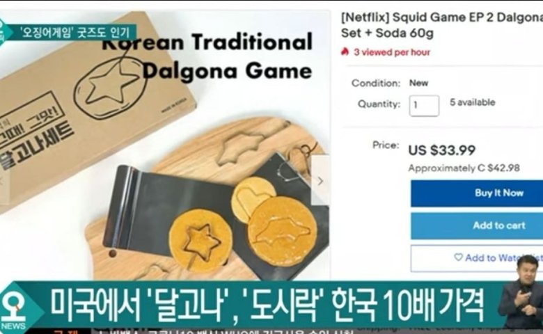 어쨌건 오징어 게임의 인기가 치솟는 와중에 외국에선 발빠르게 상품을 파는 사람들도 늘었다고 해요.